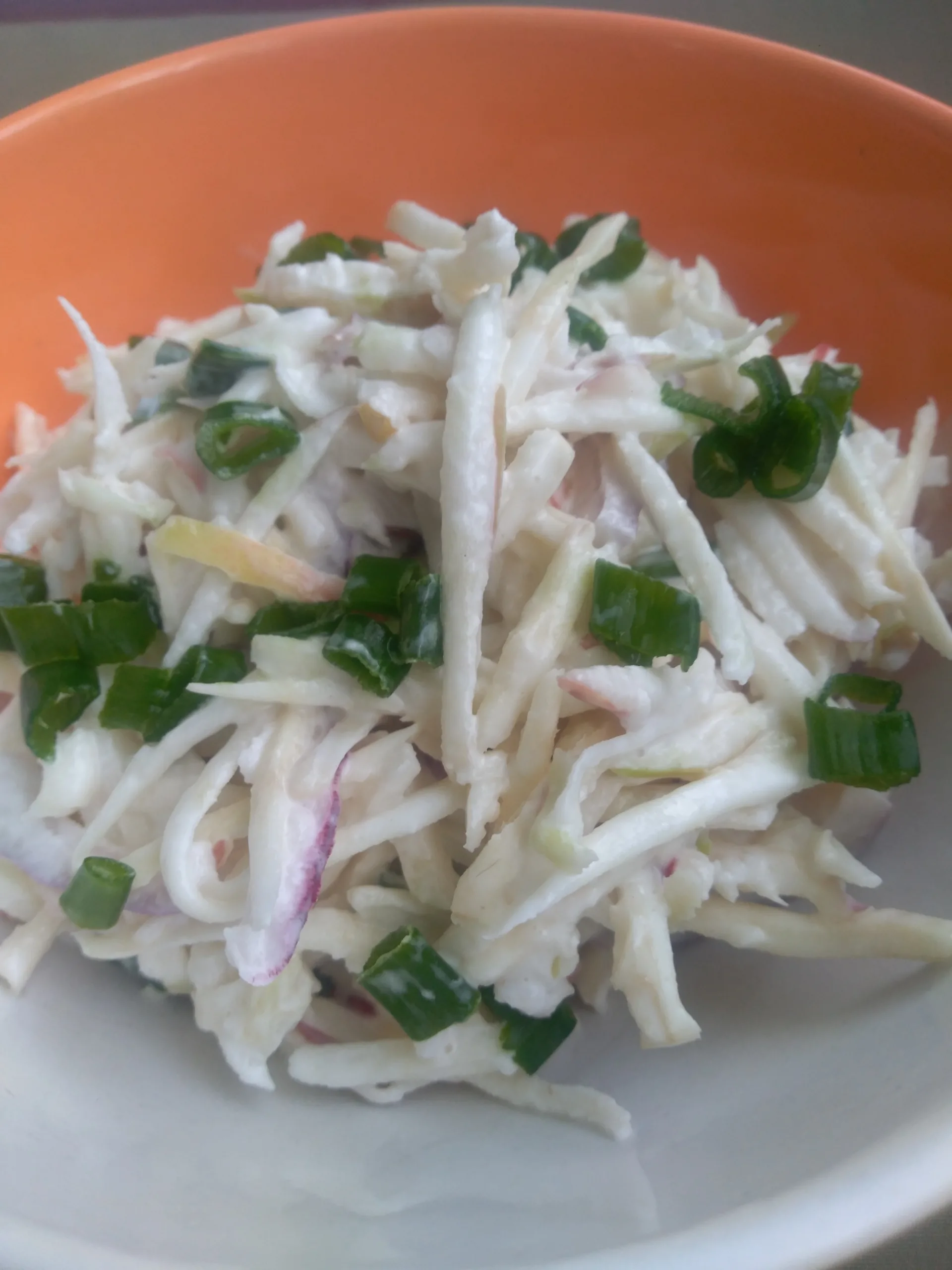 Салат посолити та заправити, на ваш смак, сметаною олією чи майонезом і одразу ж подати до столу.
